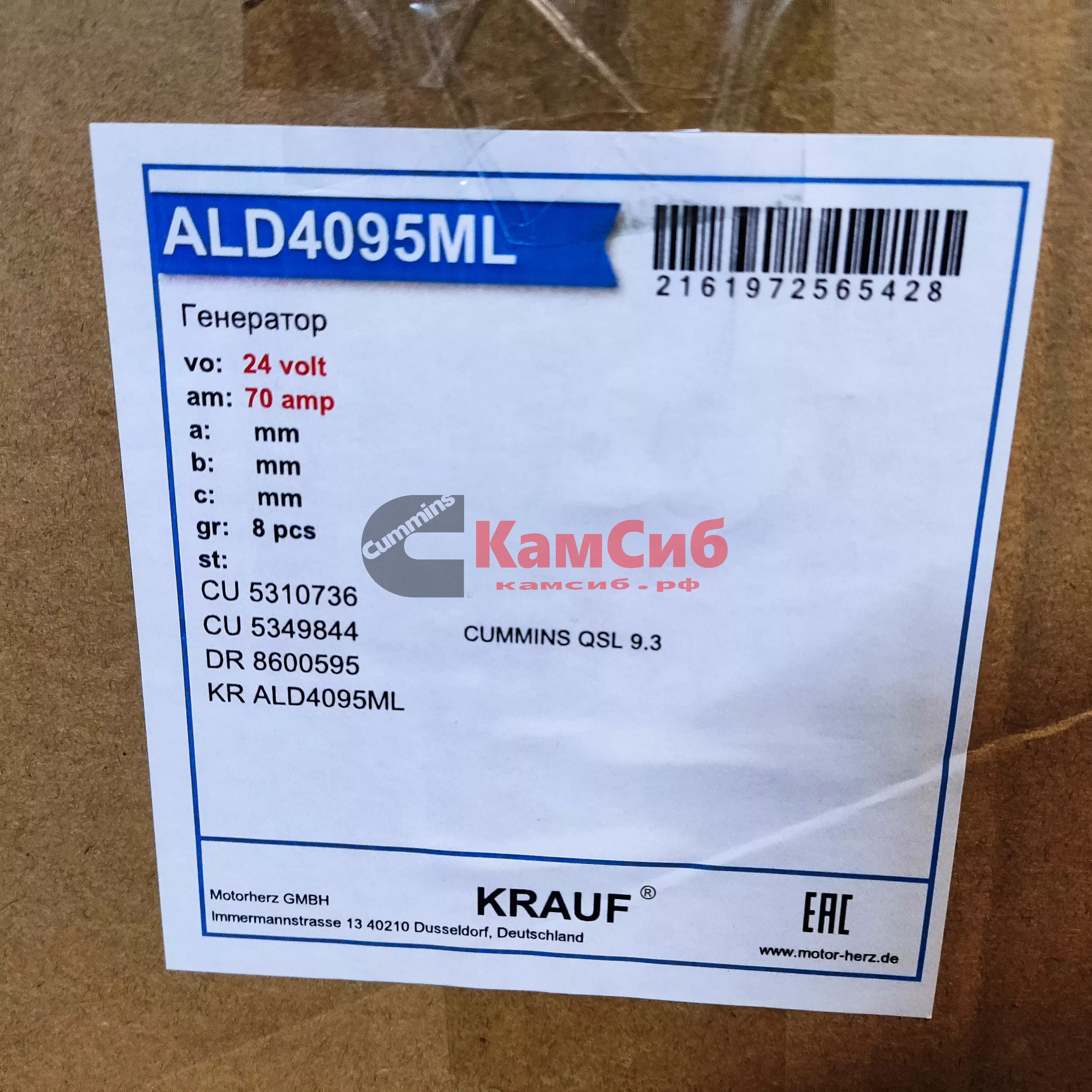 Гильза цилиндра 6LT9.3/ISL/QSL9.5 (устанавливается с кольцом 5529128)/АНАЛОГ