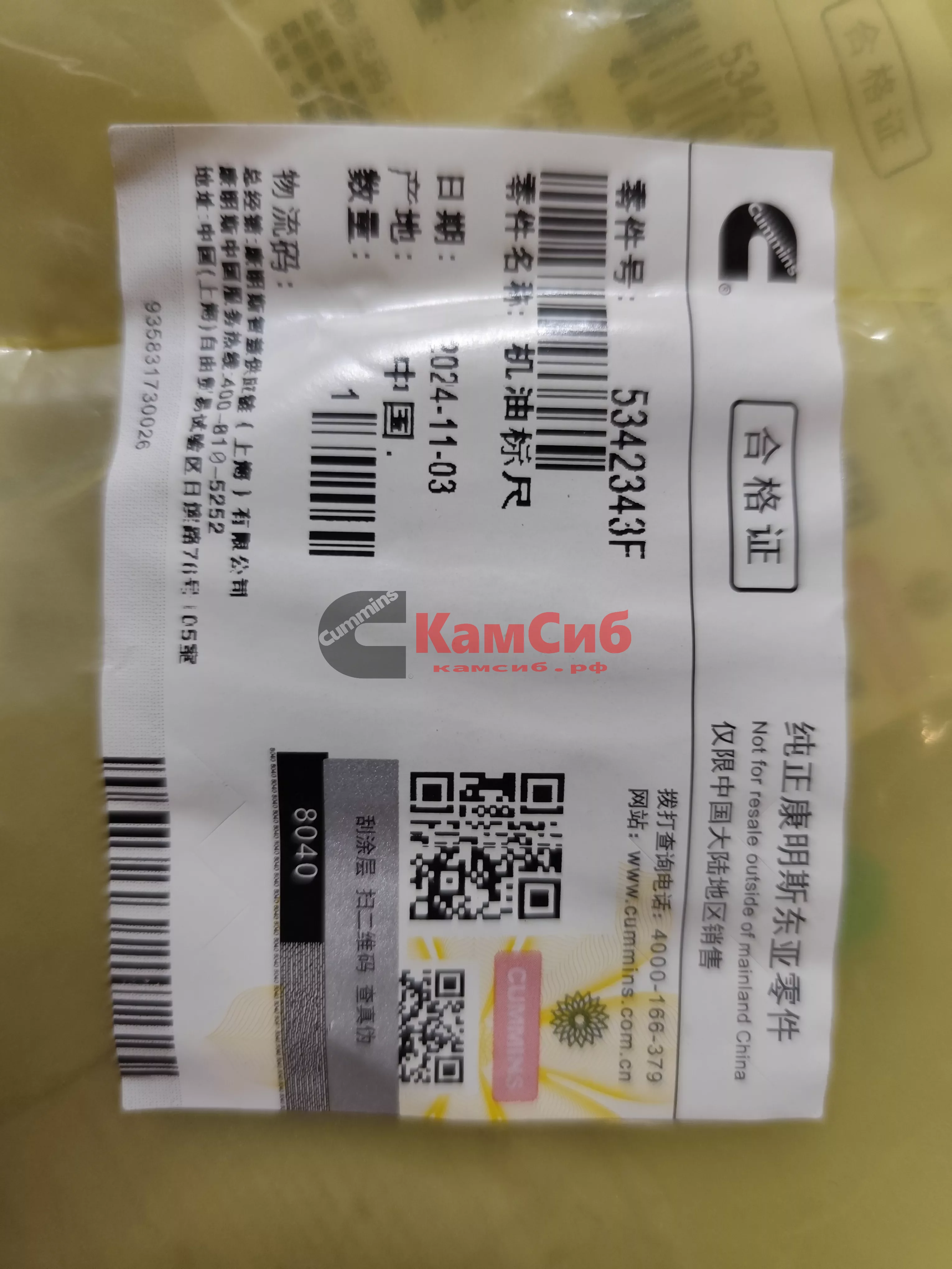 Щуп масляный ISF 3.8 (в сборе) JAC/трубка 5342343+щуп 5346431