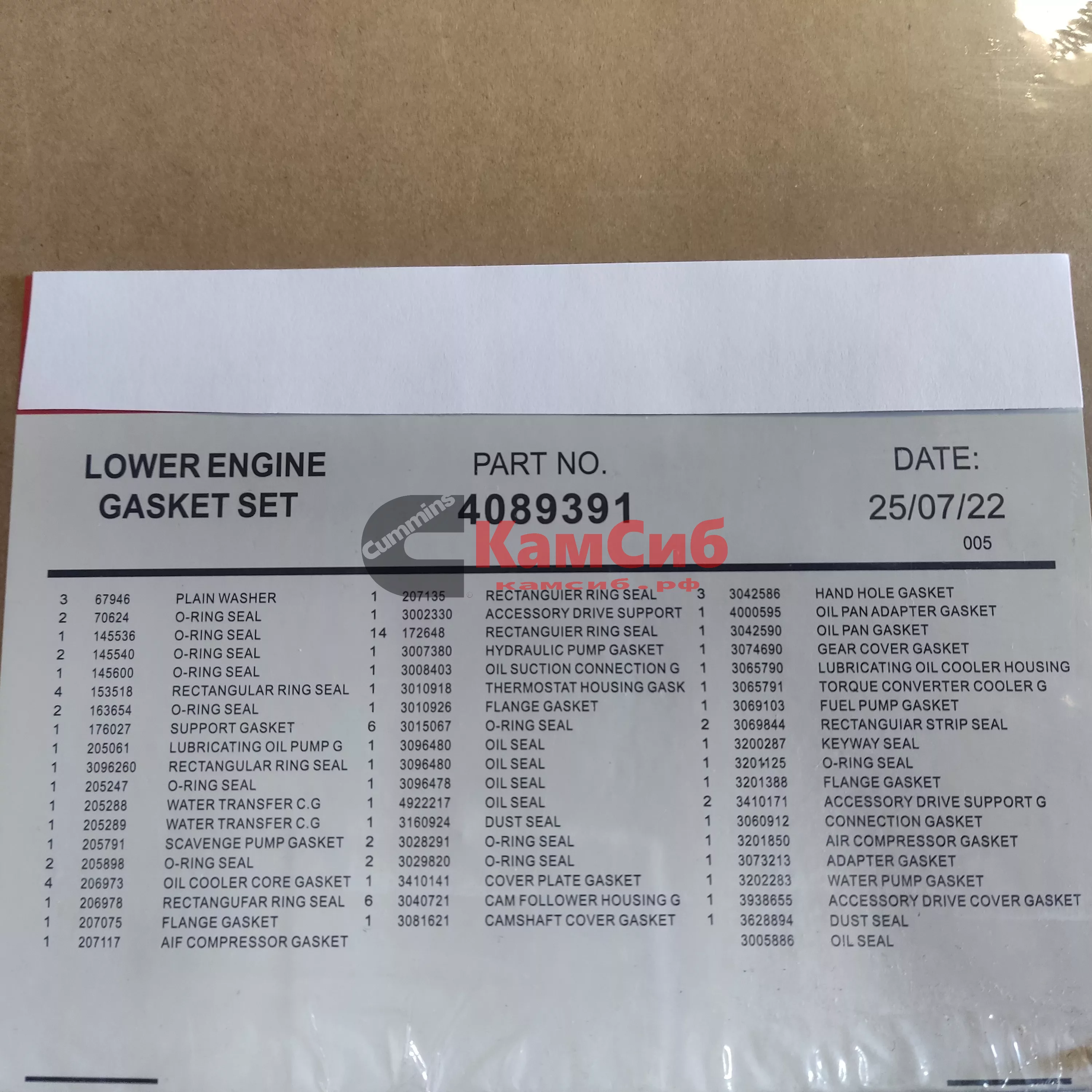 Ремкомплект ДВС КТА19 (нижний)/АНАЛОГ